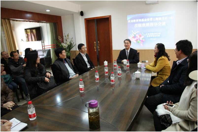 曹士海秘书长与规划部杨祥义主任还亲临广外培训部进行的指导工作并与培训部学员代表见面。曹秘书长一行首先参观了培训部的教学环境和考务工作安排,询问了教学师资和学员构成情况,对广外培训部的各项工作都给予了高度肯定。随后曹秘书长在培训部会议室会见部分学员代表,就基金委公派出国留学高访项目审批问题进行了政策宣讲,同时就2015年的派出计划也做了详细的说明,最后杨主任就培训部学员提出的项目审批、出国延期等问题进行了耐心细致地解答。