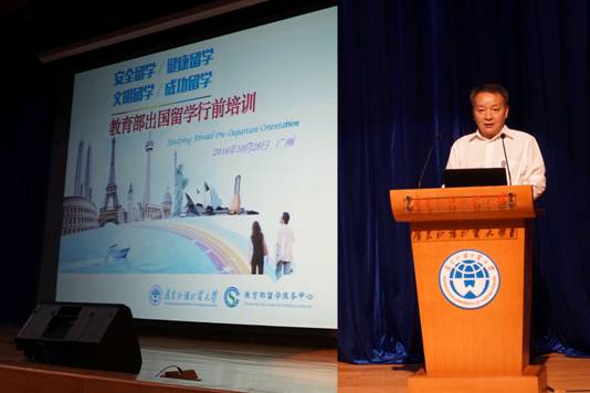 我校副校长陈林汉出席开幕式并致辞,他指出:“近年来出国留学人数迅猛增加,我国广大留学人员在海外留学期间由于突发事件、文化冲突、繁重的学习和科研压力、社会和法治环境的差异而面临各种问题,引起教育主管部门的高度重视。出国留学人员行前培训可以有效地帮助了广大出国留学人员获得国外学习和生活所必备的常识,提高安保意识,达到平安留学和成功留学的目的。”
