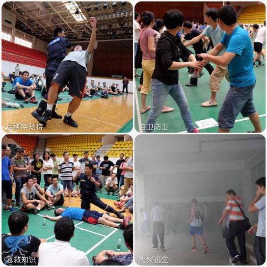 此次培训由两部分组成:第一天为安保实操培训,第二天为专家讲座。在27日的培训中,我校首次与通宏(北京)文化传媒有限公司合作,针对留学生出国安全问题开展了安保实操训练。主要内容分为“自卫防卫”、“绑架劫持”、“旅游安全(车辆)”、“急救知识”和“火灾逃生”等五部分。为了使每一位参训学员都能在更短时间内掌握有效的安全技能,培训教官对学员进行一对一讲解,手把手教学。这种寓教于乐的授课方式让学生们兴趣倍增,获益匪浅。