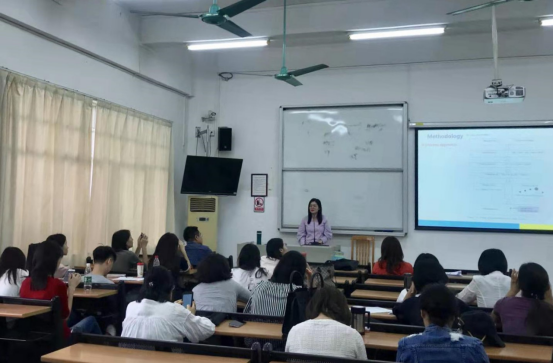 刘丹老师就任务型教学(TBLT)在雷丁大学EAP课程中的运用进行了介绍并提出了自己的反思。刘丹认为在让学生回答问题前,老师应该给予学生足够的时间相互练习(Private Before Public)。高校教学应对学生思维模式的进行培养,而非简单的知识点输入。