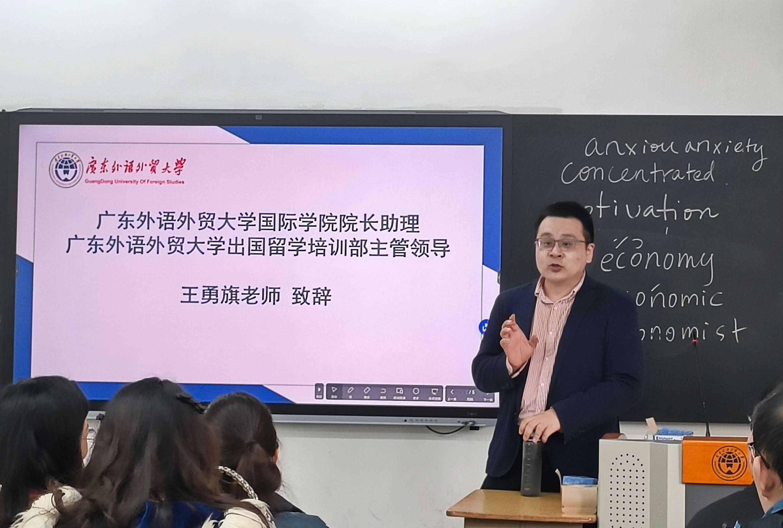 会上,王勇旗老师率先致辞,首先提出学员们可以结合自各领域的成功经验,分享学习方法并将其投入到本次集训学习中,有利于事半功倍地提高学习效率;其次针对各类课型进行详细阐述并给出学习方法建议,鼓励学员们循序渐进地进入学习状态、按部就班地进行语言学习;最后强调学员们要多和老师沟通交流,培养语言学习的专业精神。