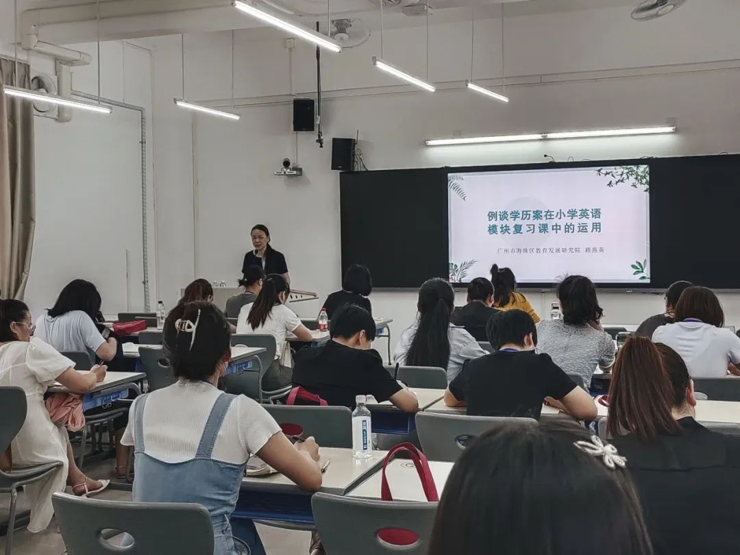 7月26日下午14:30-17:30,广州市海珠区教育发展研究院小学英语教研员、英语高级教师赖燕英老师为小学教师学员讲授《例谈学历案在小学英语模块复习课的运用》课程。