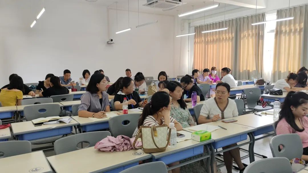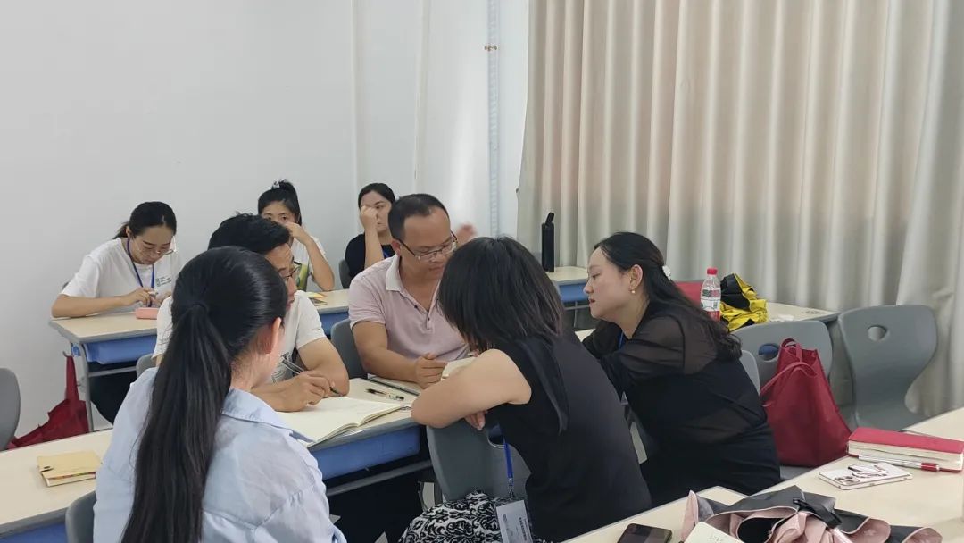 下午,在课程工作坊上学员们组成小组,共同讨论“课程内容如何设计可以补充培养学生的何种思维品质”,课堂气氛活跃。