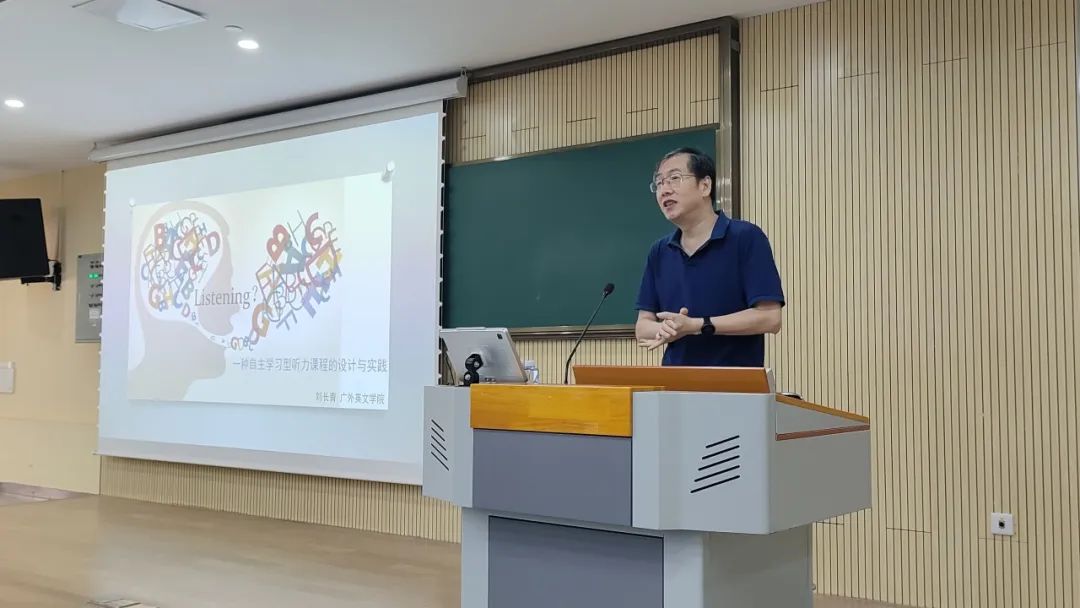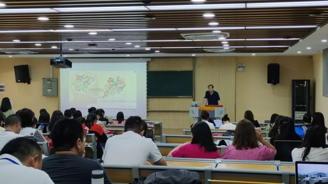 8月3日下午,广外大英文学院的英语专业教师刘长青老师讲授《听力专题讲座:一种自主学习型听力课程的设计理念与实践》课程。