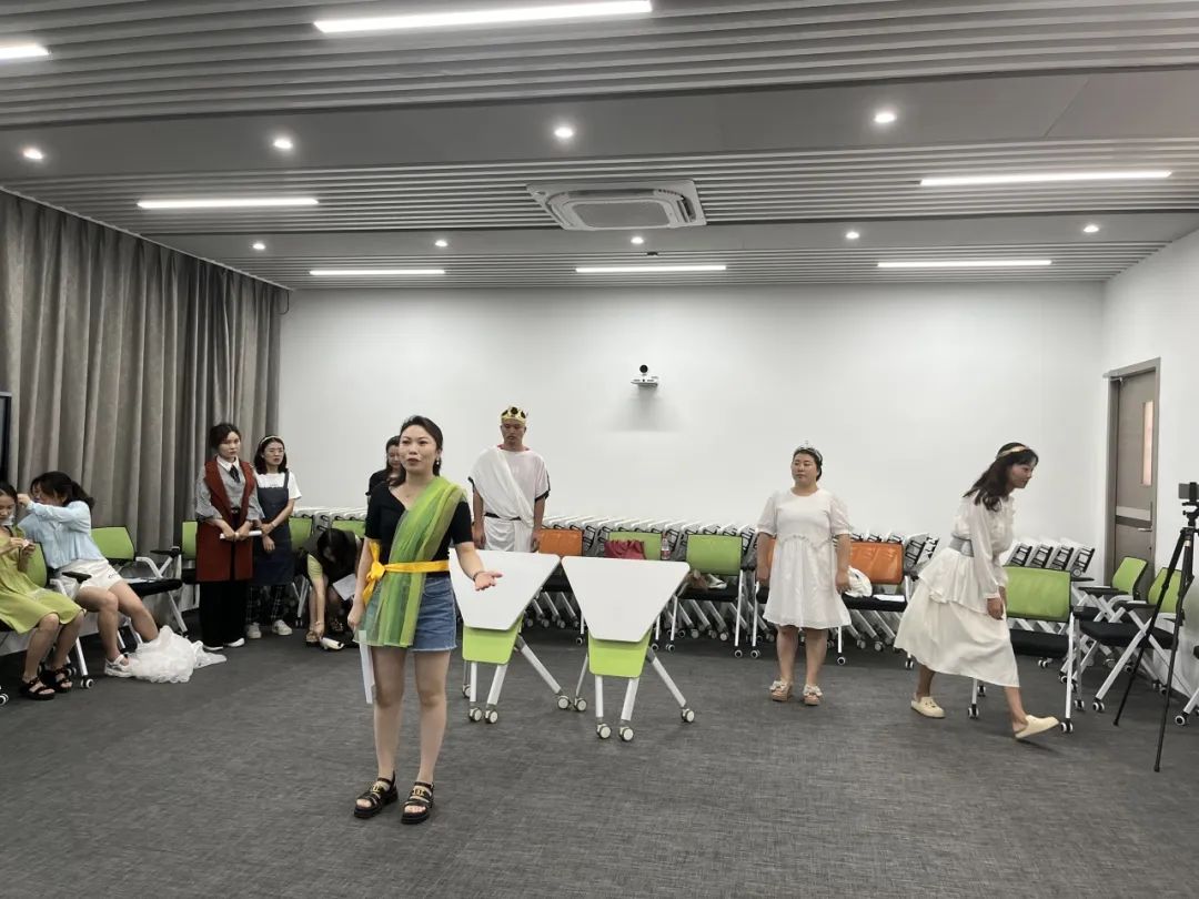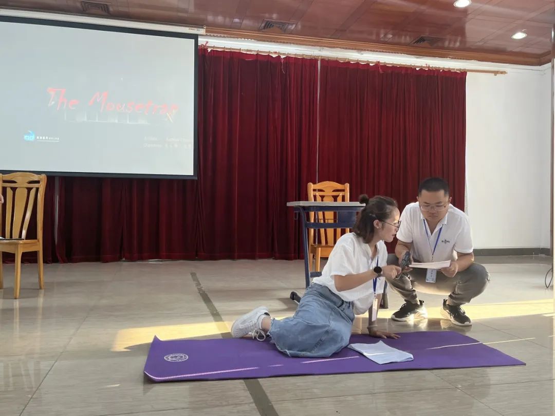 7月31日下午14:30-17:30,洪文慧老师组织学员分组表演英文戏剧Midsummer Night’s Dream和The Mousetrap,指导学员续写The Mousetrap结局与台词排练。