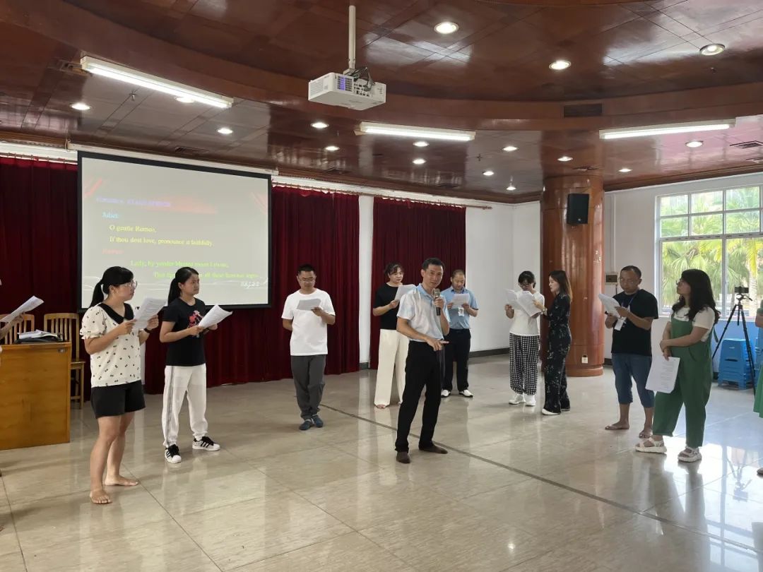 7月29日至8月4日,高中班级的老师在课上和课后努力练习台词发音,认真排练戏剧。台上一分钟,台下十年功,经过一周的刻苦努力,8月4日晚,由洪文慧老师指导、高中班级教师排演的戏剧Midsummer Night’s Dream与The Mousetrap成功上演。