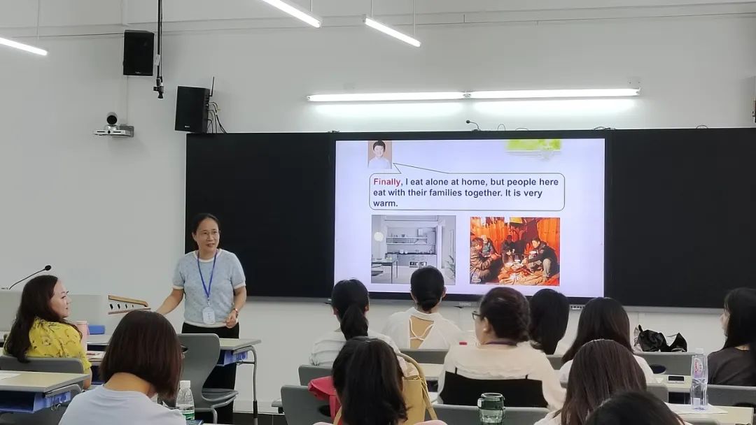 上午,李霓虹老师讲解小学英语单元整体教学设计的设计理念,提出若想解决传统教学中的问题,就必须要思考如何“转变”。李霓虹老师从“语音、语法、语篇知识、语用知识”几大方面切入,与各位学员分析现今教学设计应该如何顺应新课标的改革,强调“依托语篇,用好课本”。