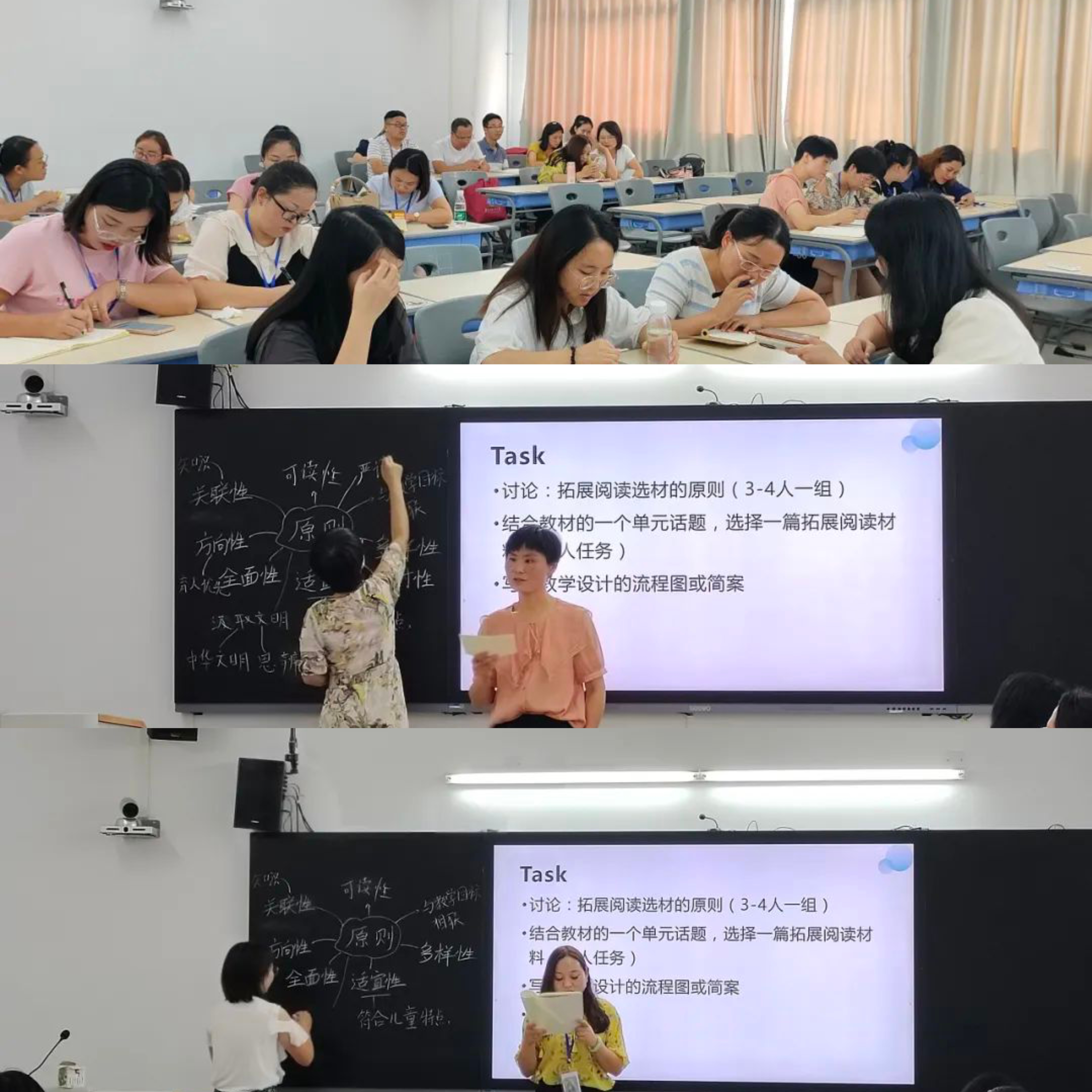 李老师在课上与学员们分享了以课例研究为依托开展拓展阅读教学的研究,给出了指导阅读的操作建议。