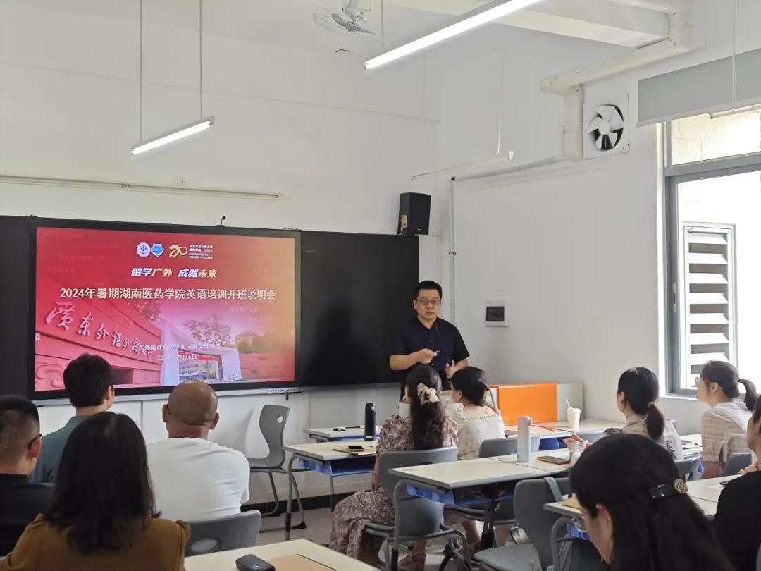 本网讯 2024年7月15日,我部2024年暑期湖南医药学院全英教学英语培训班于第一教学楼305正式开班。我部主管院领导王勇旗老师、办公室主任张海强老师和班主任洪雪玲老师以及20名学员共同参加了此次开班仪式。