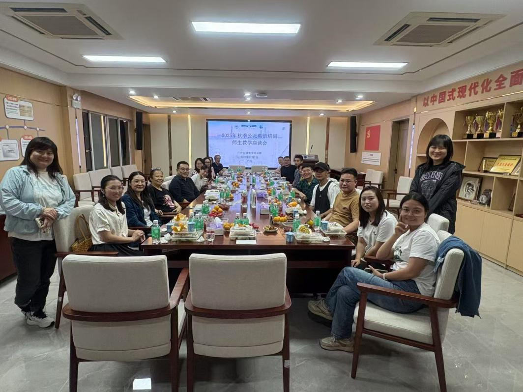 本网讯 为深入了解学生学习情况,改进教学方法,优化课程设置,2025年11月7日,出国留学培训部(以下简称“培训部”)在A103会议室举办了教学座谈会。我院院长助理王勇旗、培训部教研室主任李文凤、班主任李蓓、培训部教师代表及公派英语培训班学生代表出席参加座谈会。