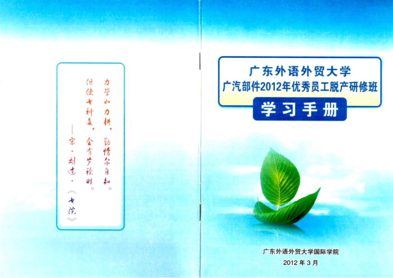 广东外语外贸大学广汽部件2012年优秀员工脱产研修班 学习手册