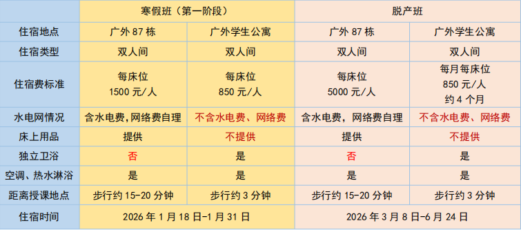 2.业余班、寒假班(考前阶段)的学员:住宿事宜请自行解决。